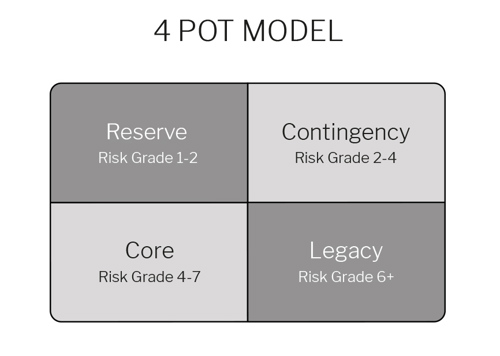 The 4 pot model works at a common sense level and helps combat behavioural biases such as loss aversion that can impact decision making.