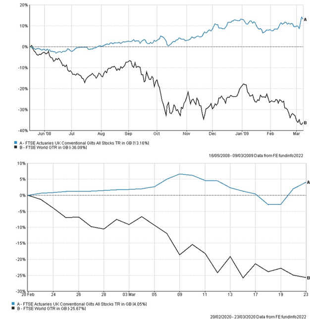 However, there are two limitations to gilts as the sole defence in a portfolio: