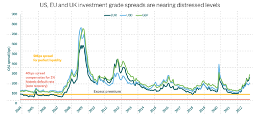 The fixed interest opportunity is not without risk though. While yields have risen meaningfully, central banks remain fixated on getting inflation under control, so additional interest rate rises are widely expected. This now appears largely discounted by the market, with US rates expected to reach over 4.5% by the end of 2022 before peaking late in Q1 2023, and the UK following a similar path but expected to reach over 5.5% later in 2023.